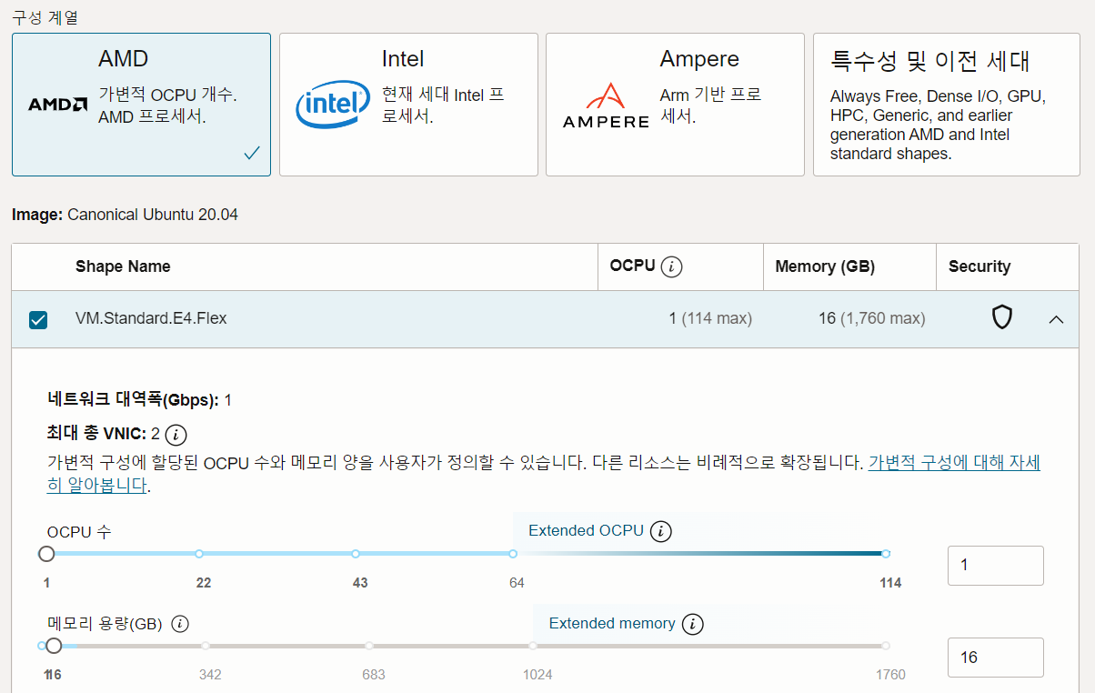 AMD, Intel, Ampere 등을 선택하시면 아래 그림처럼 본인이 원하는 수치를 지정할 수 있습니다.