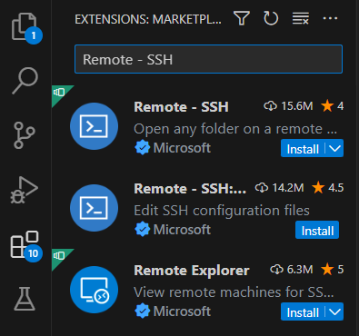 가장 위에 있는 Extension을 Install 해주세요 2. [Remote Explorer] - [Open SSH Config File]