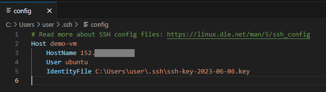 Host (원격 접속 별명) HostName (IP 주소: 공용-Public IP 주소) User (접속 계정: 사용자 이름) Port (포트 번호: 특별히 만진게 없다면 22, 생략 가능) IdentityFile (key파일 위치)
