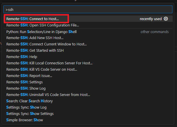 Remote-SSH: Connect to Host... 를 클릭합니다.