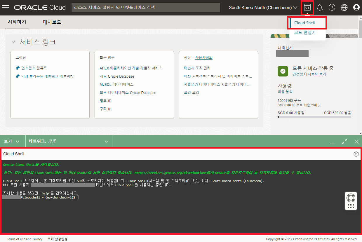 OCI에는 Cloud Shell이라는 간편한 도구가 있습니다.