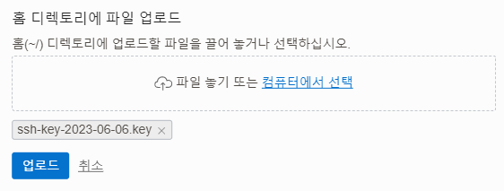 $ mkdir ".ssh" $ mv ssh-key-2023-06-06.key .ssh/ssh-key-2023-06-06.key2. 원격접속