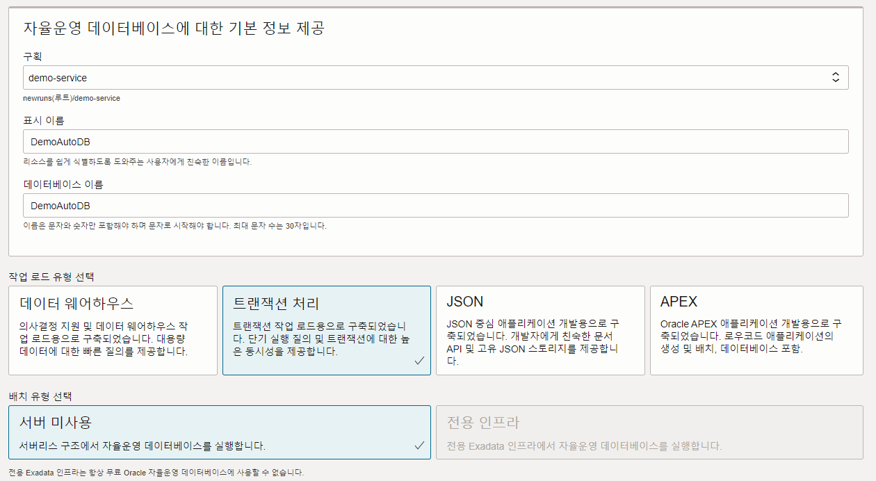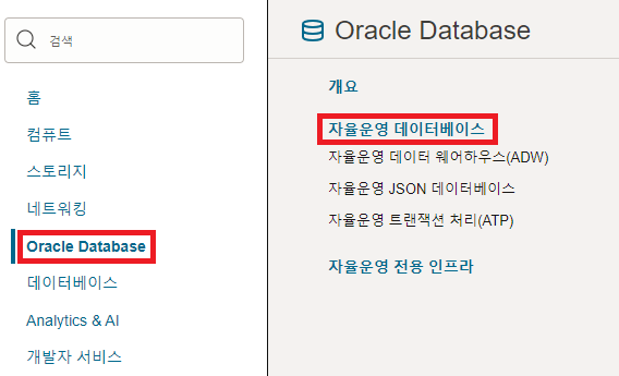 현재 OCI에서 APEX와 연동 가능한 DB는 두개입니다.