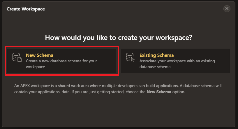 이제 방금 Autonomous DB를 만들었으니 Schema가 없으므로 New Schema를 선택하겠습니다.