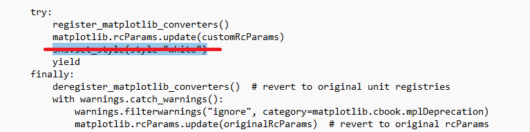 40번째 줄 쯤에 있습니다. 파일 가장 하단에 있습니다. "axes.unicode_minus": False # 추가해주세요. <- 마이너스 부호가 깨지는 것을 방지합니다. "font.family": ["Malgun Gothic"], # 수정해주세요 sans-serif -> Malgun Gothic(윈도우) / AppleGothic (맥) sns.set_style(style="white") # 삭제해주세요