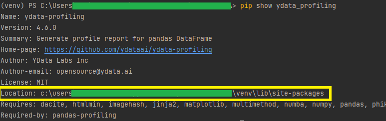 저 Location 정보를 복사한 뒤, \ydata_profiling\visualisation 를 뒤에 덧붙이면 수정해야하는 파일의 위치가 나옵니다.