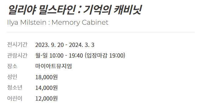 일리야 밀스타인 : 기억의 캐비닛展 관람 후기 (마이아트뮤지엄)일상/문화 2023. 11. 26. 19:06반응형