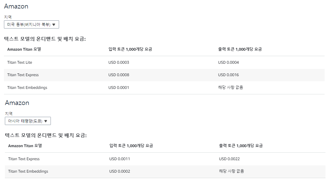 https://aws.amazon.com/ko/bedrock/pricing/?refid=06301b9b-f6b6-4cc7-a841-f8e2afa0e4d0 같은 모델이더라도 미국이 더 쌉니다.