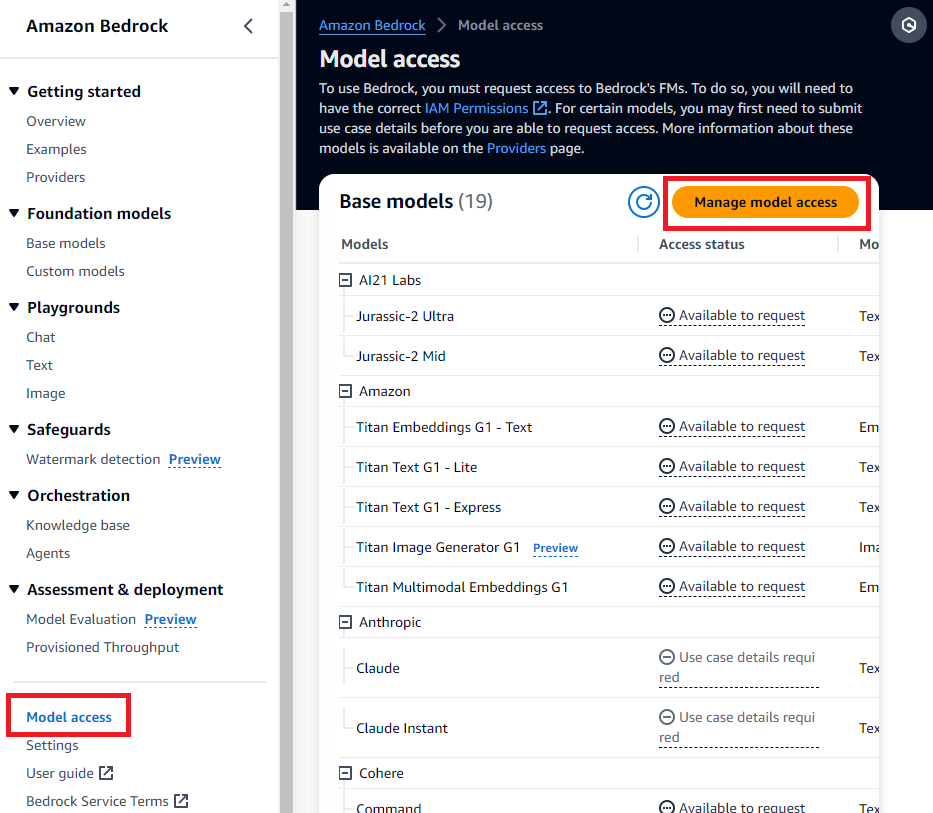 Machine Learning -> Amazon Bedrock 1) Model access