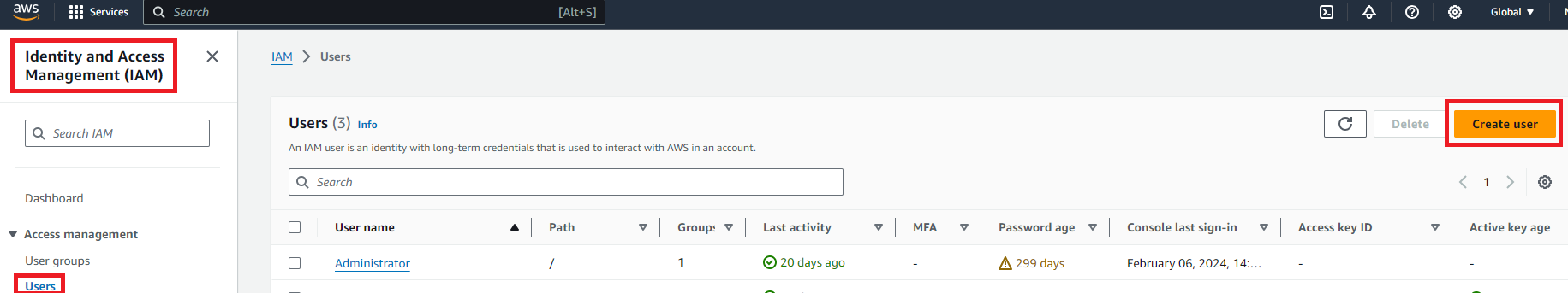 b. Create access key
