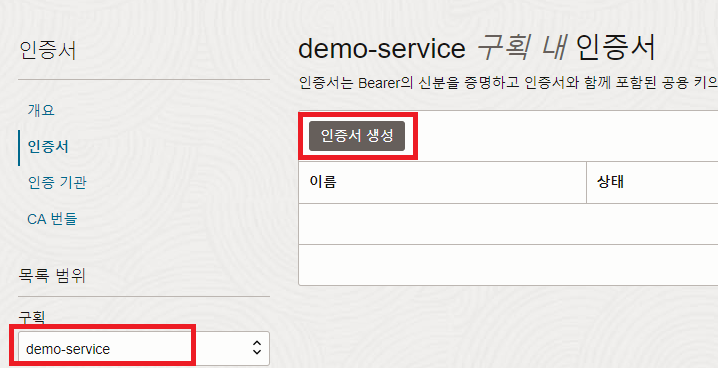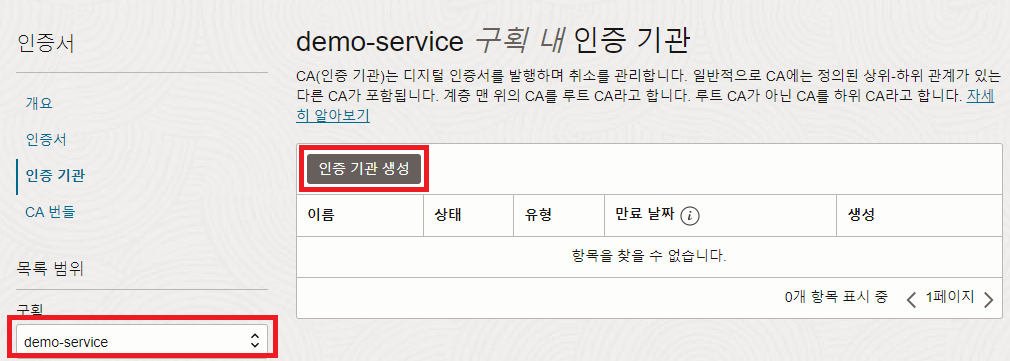 이름을 추가해줍니다. (예: demo-certificate-authority)
