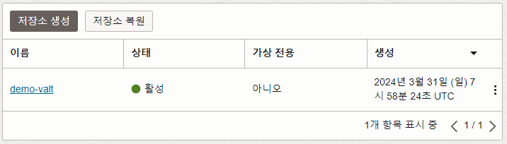 - demo service의 저장소: 위에서 생성한 valt를 선택합니다. (valt가 하나밖에 없다면 자동 선택되어있음)
