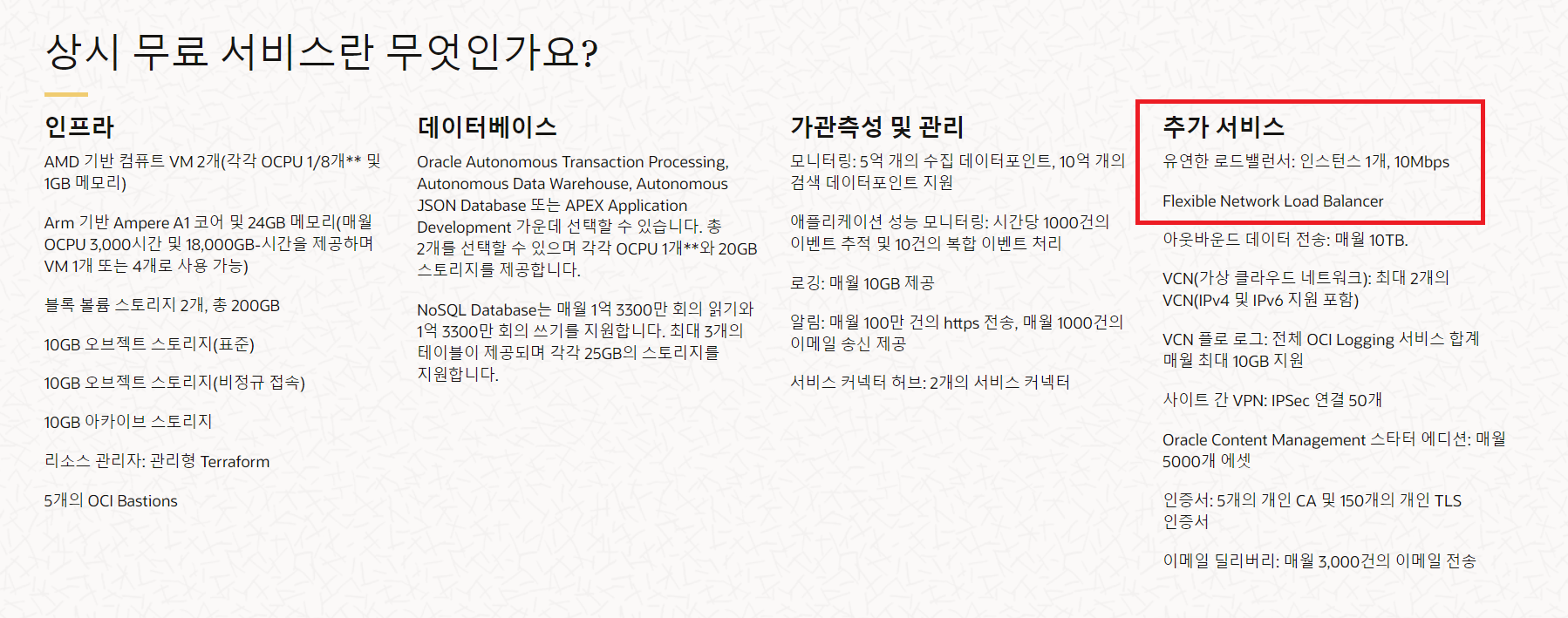 OCI에서는 인스턴스 1개에 대한 로드밸런서를 상시 무료 서비스로 제공하고 있습니다.