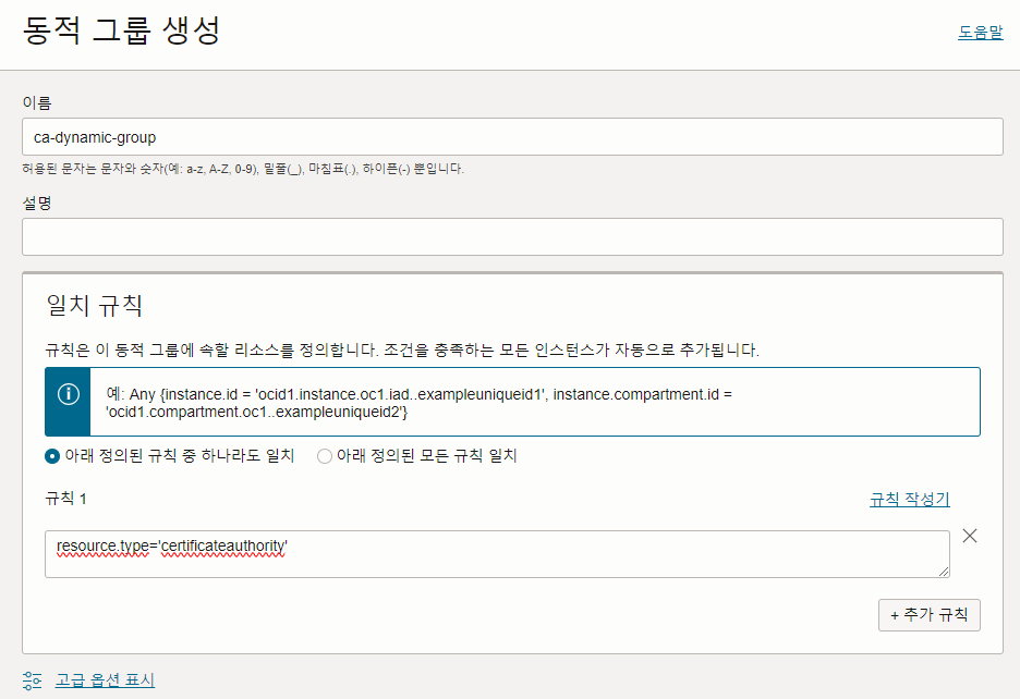Dynamic Group 클릭 후 [Create Dynamic Group]