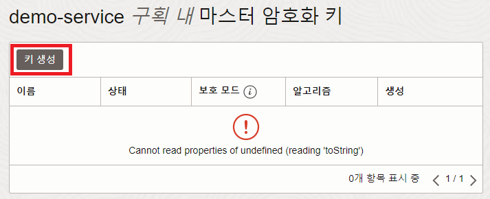 인증서 생성 버튼을 눌렀을 때 아래와 같은 에러가 발생한다면