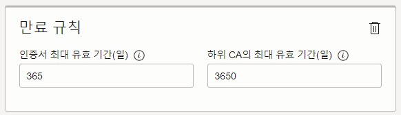 - CA유효기간의 시작과 끝을 지정합니다. (지정하지 않으면 생성하는 그 순간부터 발효)