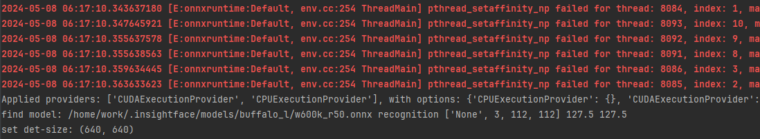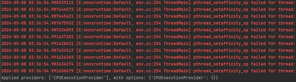 Applied privider가 'CPUExecutionProvider'로 적용되고 있습니다.