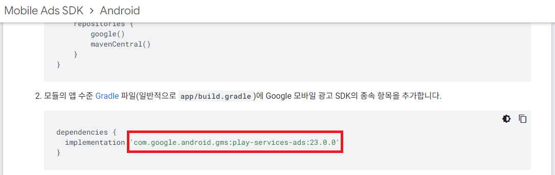 구글 Ads 공식문서를 보고 그대로 따라했었는데,