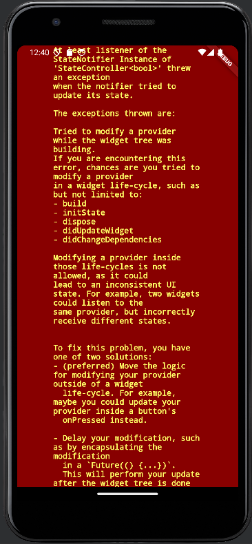 [Riverpod] Unhandled Exception: Tried to modify a provider while the widget tree was building.Programing/Flutter 2024. 6. 9. 21:52반응형