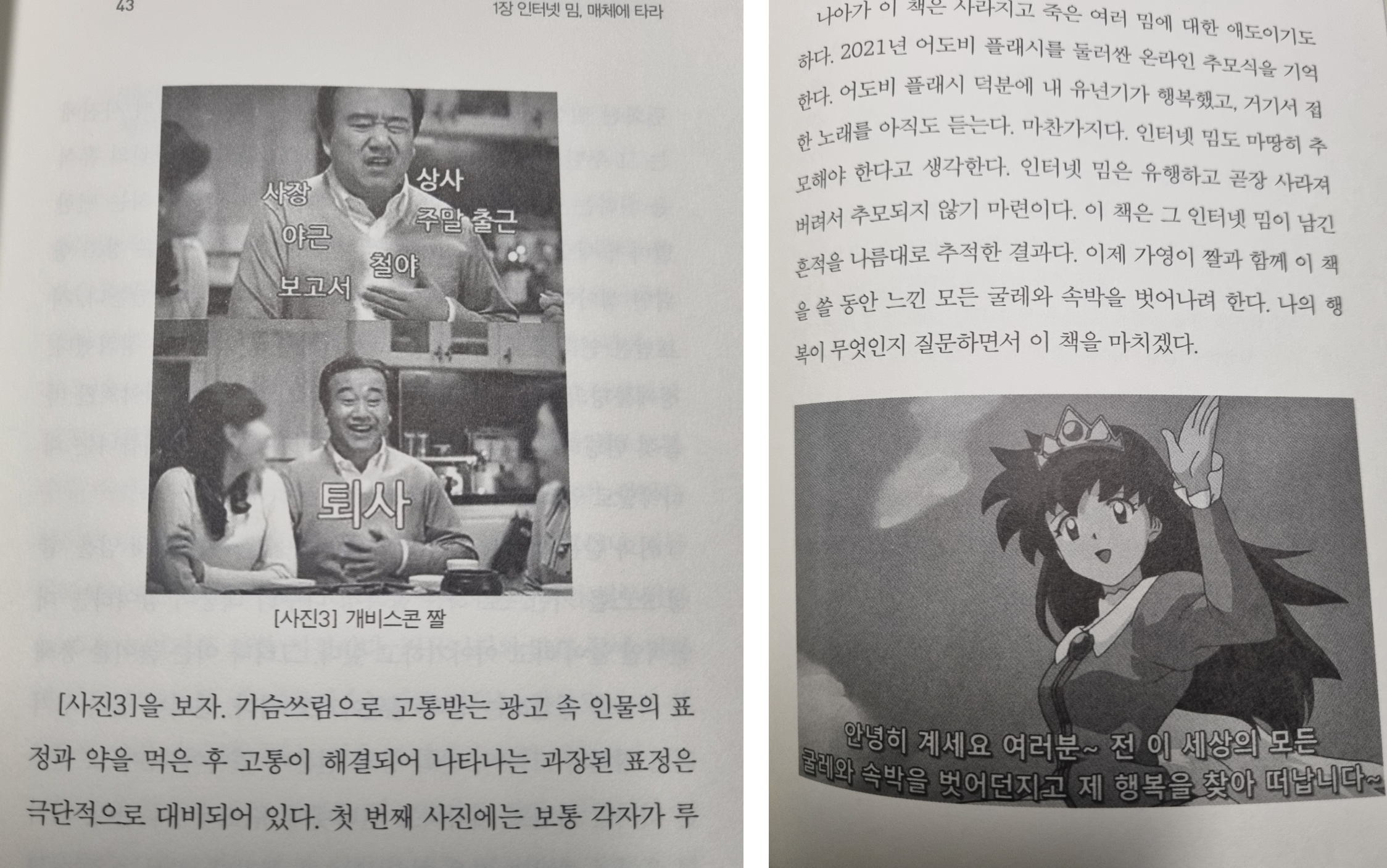 이 책은 한국의 밈들을 정리한 백과사전이 아니다. 애초에 저자의 석사논문에서 시작한 책이다.