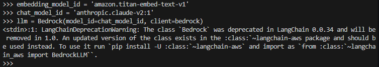from langchain.llms.bedrock import Bedrock은 이제 사용하지 못하게 되었습니다.