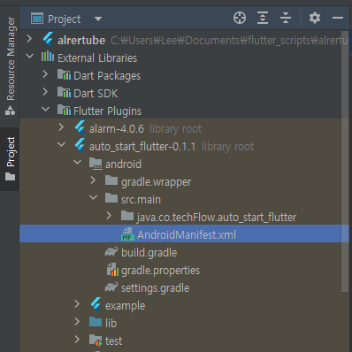 위치: C:\Users\{사용자명}\AppData\Local\Pub\Cache\hosted\pub.dev\{패키지명}\android\src.main.AndroidManifest.xml