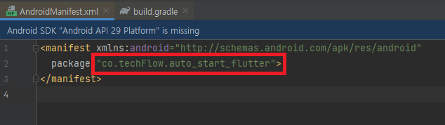 1) AndroidManifest.xml에서 기존 namespace 확인