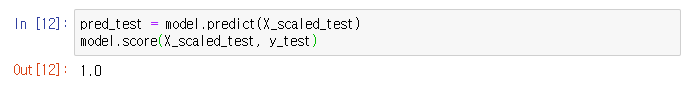pred_test = model.predict(X_scaled_test) model.score(X_scaled_test, y_test) # 1.0