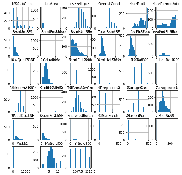 (물론 표준편차, 중앙값 등등 다른 기술통계치도 보는 것이 좋습니다. 하지만 여기선 생략합니다.)df3.mean()MSSubClass 56.897260 OverallQual 6.099315 OverallCond 5.575342 YearBuilt 1971.267808 YearRemodAdd 1984.865753 BsmtFinSF1 443.639726 BsmtUnfSF 567.240411 TotalBsmtSF 1057.429452 1stFlrSF 1162.626712 GrLivArea 1515.463699 BsmtFullBath 0.425342 FullBath 1.565068 HalfBath 0.382877 BedroomAbvGr 2.866438 TotRmsAbvGrd 6.517808 Fireplaces 0.613014 GarageCars 1.767123 GarageArea 472.980137 MoSold 6.321918 YrSold 2007.815753 dtype: float64Fireplaces의 평균은 0.6인데 YrSold의 평균은 2007입니다. 하나는 면적이고 하나는 년도이니 단위(scale)가 다른건 당연합니다.