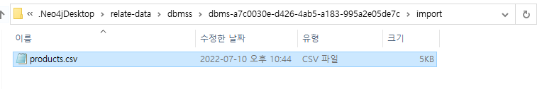 csv파일을 import폴더에 넣어줬습니다. 2. LOAD CSV