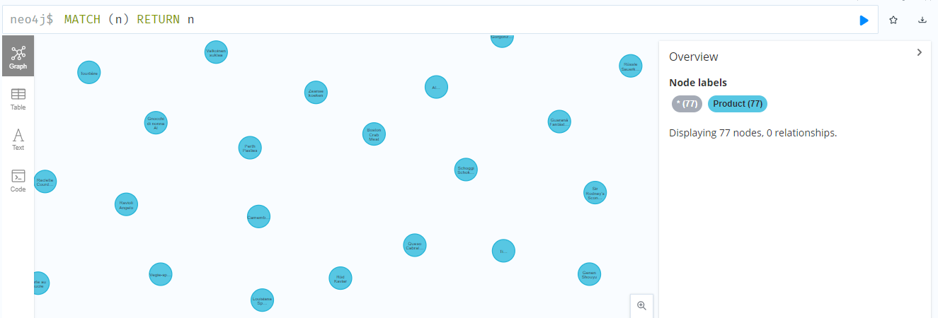 노드.속성명 = toFloat(row.칼럼명)LOAD CSV WITH HEADERS FROM 'file:///products.csv' AS row CREATE (n:Product) SET n = row, n.unitPrice = toFloat(row.unitPrice), n.unitsInStock = toInteger(row.unitsInStock), n.unitsOnOrder = toInteger(row.unitsOnOrder), n.reorderLevel = toInteger(row.reorderLevel), n.discontinued = (row.discontinued <> "0")