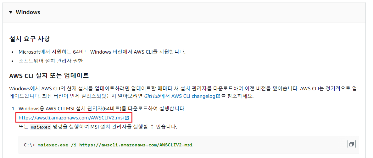 AWS S3 한번에 다운받기 (AWS CLI)Programing/AWS 2022. 10. 7. 11:19반응형AWS 콘솔은 어지간히 불편한게 많습니다. 별 것 아닌 것 같은 기능이 지원이 안되죠. 대표적인게 S3의 데이터를 폴더째 다운받거나 여러개를 한번에 다운받는게 안된다는 것입니다. 현재로서는 콘솔 대신 CLI를 이용하는 게 최선인 것 같습니다. 1. CLI 다운받기최신 버전의 AWS CLI 설치 또는 업데이트 - AWS Command Line Interface 설치 관리자의 아무 위치에서나 Cmd+L을 눌러 설치에 대한 디버그 로그를 볼 수 있습니다. 이렇게 하면 로그를 필터링하고 저장할 수 있는 로그 창이 열립니다. 로그 파일도 /var/log/install.log에 자 docs.aws.amazon.com 위의 사이트에서 본인의 OS에 맞게 AWS CLI를 설치해주세요  전 윈도우에 다운받아야 하기 때문에 Windows에서 다운받았습니다.  무작정 Next 설치가 완료되었다면 CMD에서 정상 설치여부를 확인할 수 있습니다. C:\Users\OOOOO> aws --version aws-cli/2.4.5 Python/3.8.8 Windows/10 exe/AMD64 prompt/off 정상적으로 설치가 완료되었습니다. 2. 계정 액세스 키 발급하기기존에 access key가 없었다면 아래의 docs를 참고해서 계정 키를 만들어주세요 AWS 계정 및 액세스 키 - AWS Tools for PowerShell 이 페이지에 작업이 필요하다는 점을 알려 주셔서 감사합니다. 실망시켜 드려 죄송합니다. 잠깐 시간을 내어 설명서를 향상시킬 수 있는 방법에 대해 말씀해 주십시오. docs.aws.amazon.com 3. aws configure 값 입력하기다시 CMD를 열어서 aws configure라고 입력한 뒤, 발급받은 액세스 키 값을 입력해주세요 C:\Users\OOOOO> aws configure AWS Access Key ID [None]: $$$$$$$$$$$$$$$$$$$$ AWS Secret Access Key [None]: $$$$$$$$$$$$$$$$$$$$$$ Default region name [None]: # 전 입력 안했습니다. Default output format [None]: # 전 입력 안했습니다.전 한국 region만 사용하고 있어서 region을 생략했습니다. 4. 다운받기이제 CMD에서 aws s3 cp {S3 디렉토리} {다운받을 디렉토리} --recursive 라고 입력하면 다운로드가 진행됩니다 C:\Users\OOOOO> aws s3 cp s3://버킷이름/폴더1/폴더2 C:\Users\OOOOOO\Downloads --recursive개별 파일 하나를 다운받을 때는 recursive가 필요없지만, 폴더 하나를 통째로 다운받으려면 recursive 설정을 붙여줘야 한다고 합니다.  다운로드가 완료되었습니다! 반응형'Programing > AWS' 카테고리의 다른 글[AWS Bedrock] Agents로 Bedrock 기능 구체화하기 (0) 2024.03.03 [AWS Bedrock] RAG를 위한 지식베이스 생성 (1) 2024.02.27 [AWS Bedrock] Bedrock 시작하기 (0) 2024.02.27 [생성AI 서비스 선택] AWS Sagemaker VS AWS Bedrock (1) 2024.02.26 [Python] AWS S3에 모델파일 저장하기, 불러오기 (boto3) (0) 2023.02.16