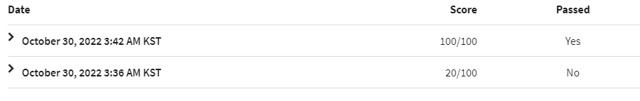 그제야 100점이 나왔습니다.