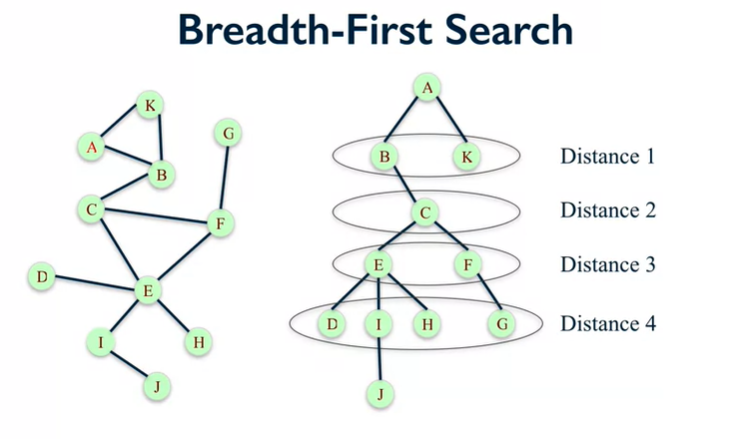 - Distance2 : B와 연결되어있는 C, K(하지만 K는 Distance1에 있으므로 생략)
