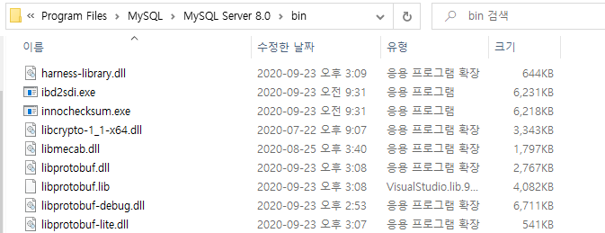 윈도우에서 MySQL workbench를 이용해 설치했을 경우, bin 폴더 위치는 일반적으로 아래와 같습니다.