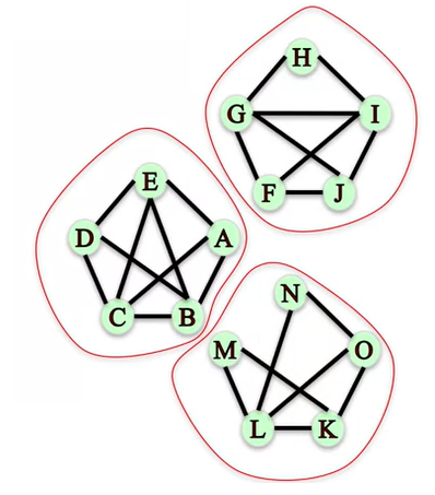 3번 : 오로지 {A,B,C,D,E}, {E,F,G,H,I}, {J,K,L,M,N,O}만 위 그래프의 연결성분입니다.