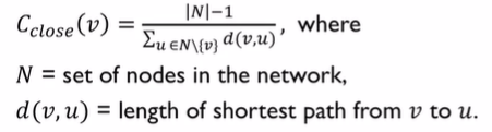 각 노드의 근접중심성 공식 - 노드v의 근접중심성 = (전체 노드 개수 - 1) / 총합(v에서 다른 노드들 까지의 최단거리)