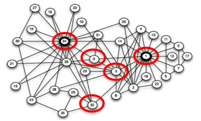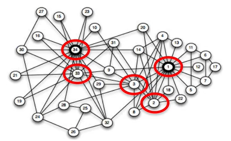 import networkx as nx G = nx.karate_club_graph() G = nx.convert_node_labels_to_integers(G,first_label=1)여기서 가장 중요한 노드를 뽑아야 한다면,