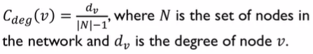 각 노드의 연결중심성 공식 - 노드v의 연결중심성 = (v의 degree) / (전체 노드 개수 - 1)