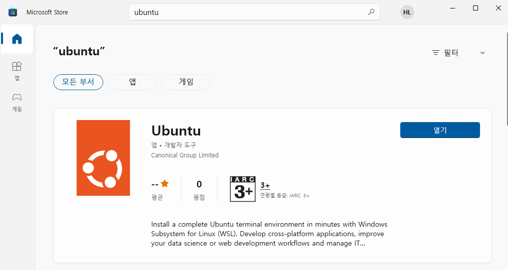 Window 시작버튼에 있는 ubuntu wsl 앱을 실행해도 되고, cmd나 Pycharm의 터미널에서 실행시킬 수도 있습니다.