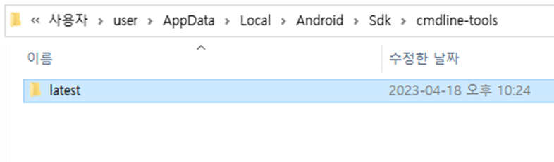 C:\Users\user\AppData\Local\Android\Sdk\cmdline-tools - 8.0이라고 되어있는 폴더명을 latest로 변경해주세요 (위의 사진처럼)