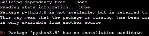 E: Package 'python3.8' has no installation candidate 해결해줍시다