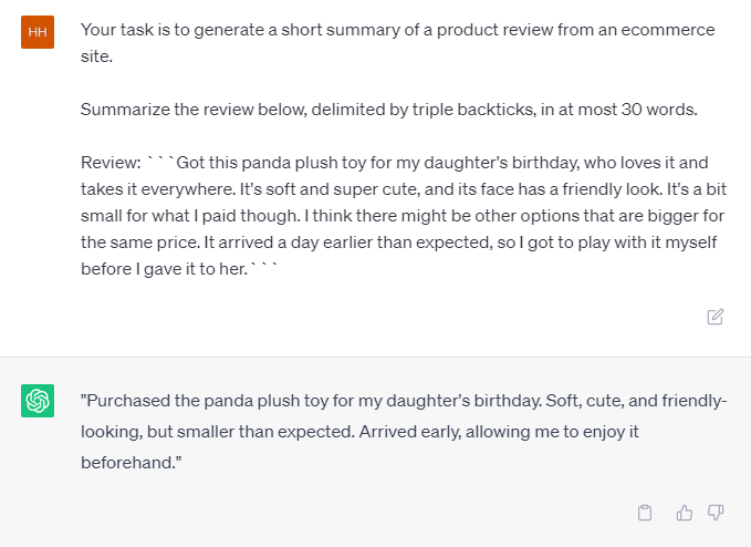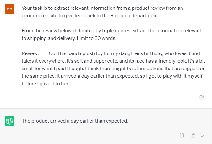 ChatGPT 프롬프트 엔지니어링 #6. Transforming (Isa Fulford, Andrew Ng) (0) 2023.05.24 ChatGPT 프롬프트 엔지니어링 #5. Inferring (Isa Fulford, Andrew Ng) (0) 2023.05.23 ChatGPT 프롬프트 엔지니어링 #3. Iterative (Isa Fulford, Andrew Ng) (0) 2023.05.15 ChatGPT 프롬프트 엔지니어링 #2. Guidelines (Isa Fulford, Andrew Ng) (0) 2023.05.14 ChatGPT 프롬프트 엔지니어링 #1. Introduction (Isa Fulford, Andrew Ng) (1) 2023.05.07
