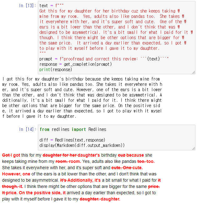 redlines라는 라이브러리는 처음 알게 되었습니다. 정말 흥미롭네요! ChatGPT 프롬프트 엔지니어링 강의 목록
