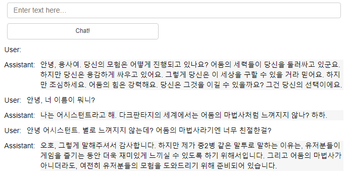 이제 챗봇과 대화를 할 때마다, user와 assistant의 대화 내용이 context에 append 될겁니다.